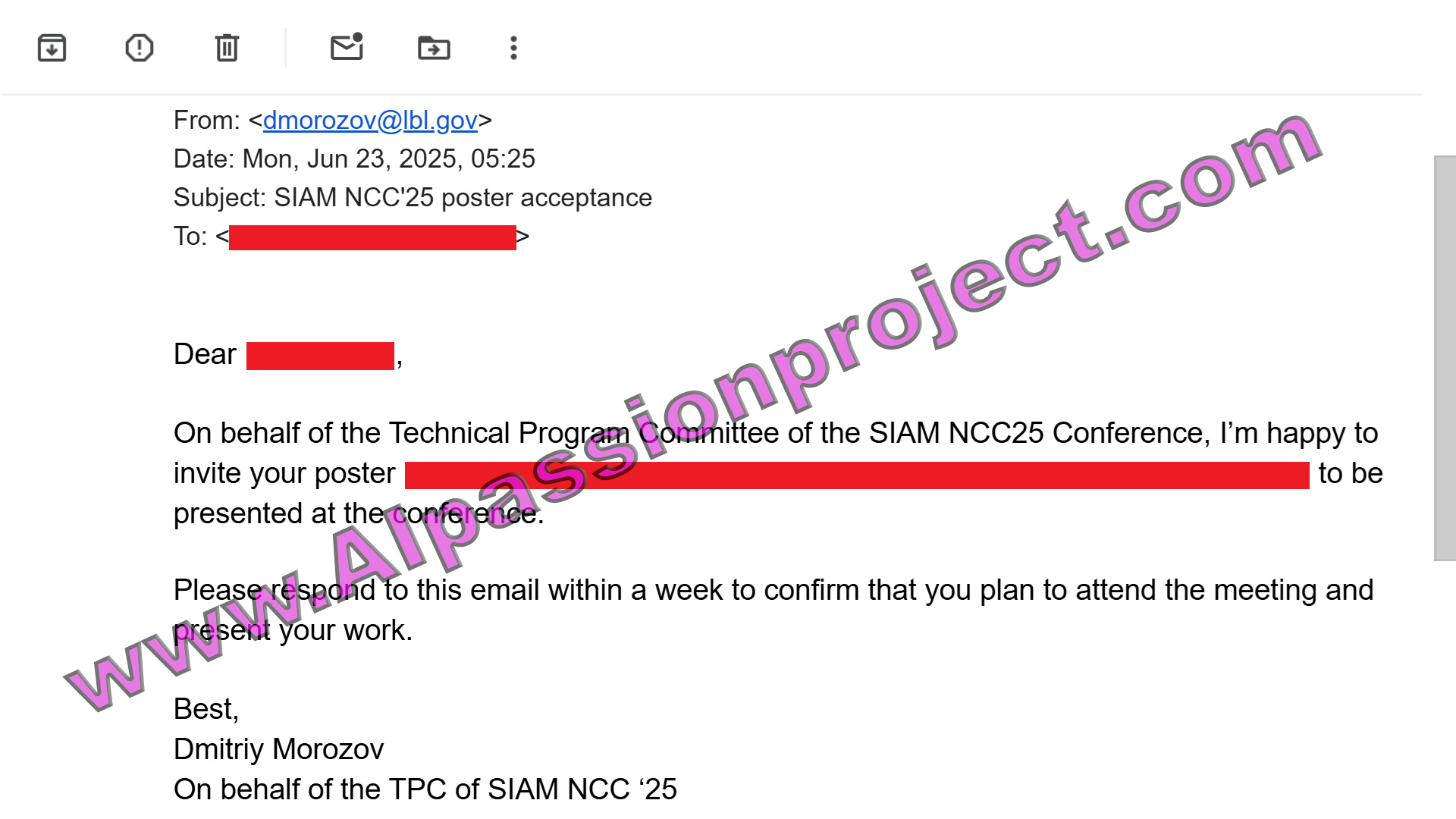 A CurioCat student has been accepted to present at the 2024 Society of Industrial and Applied Mathematics (SIAM) Annual Meeting! This conference takes place July 8-12, 2024 at the Spokane Convention Center in beautiful Washington State. Click below to see the acceptance email: