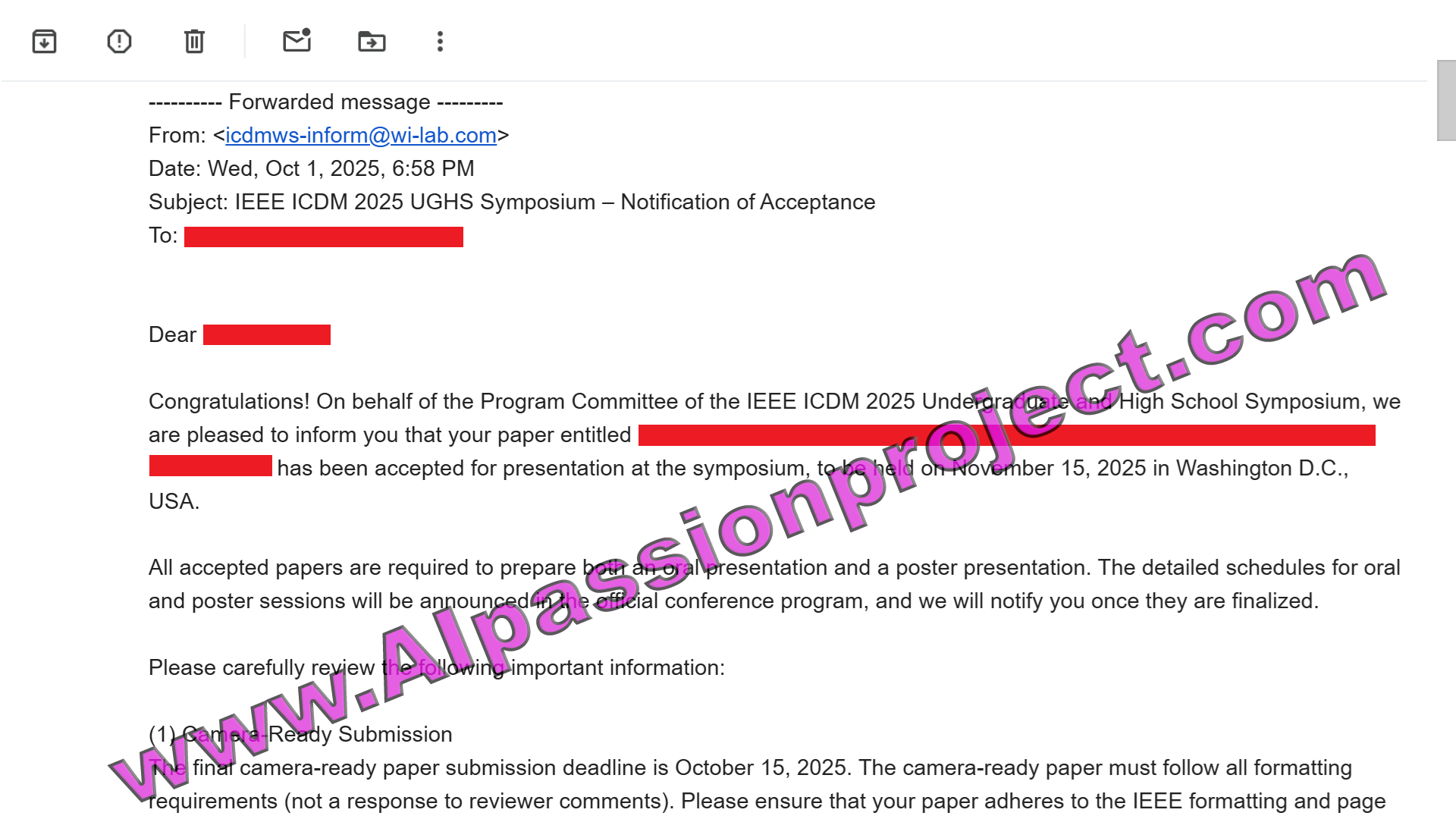 A CurioCat / AI Passion Project student has received a Rising Star Award from the 2025 IEEE International Conference on Data Mining! This is a tremendous award, especially given that ICDM is the Google Scholar 12th ranked publication in the field of Data Mining & Analysis! This award recognizes students who have submitted exceptional papers with high reviewer scores. Click below to see the acceptance email: