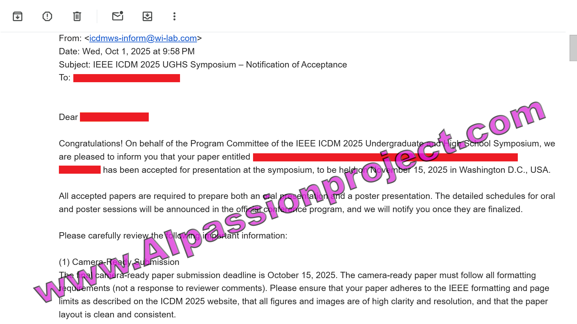A CurioCat / AI Passion Project student has been accepted to present and publish with IEEE AIxSET (AI and Science, Engineering, Technology). Great news! Click below to see the acceptance email: